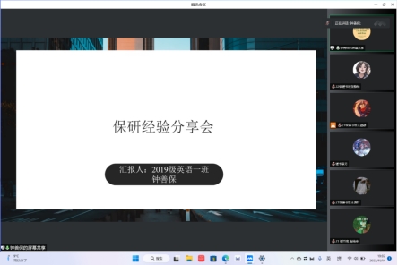 (通讯员 贺静怡 吴泓锟 李东林 朱艺彤)11月14日晚,yl23455永利官网2021级锺书班推免生经验分享会以线上形式举办,本次分享会邀请了外国语学院2019级英语专业钟善保同学担任主讲嘉宾,书院2021级锺书班全体同学、部分外国语学院的同学参加此次分享会。