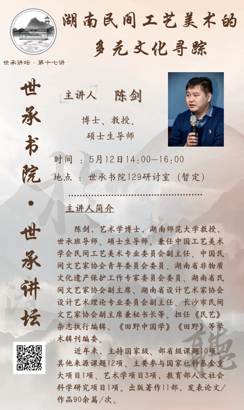 湖南民间工艺美术的多元文化寻踪——陈剑教授做客第十七期世承讲坛