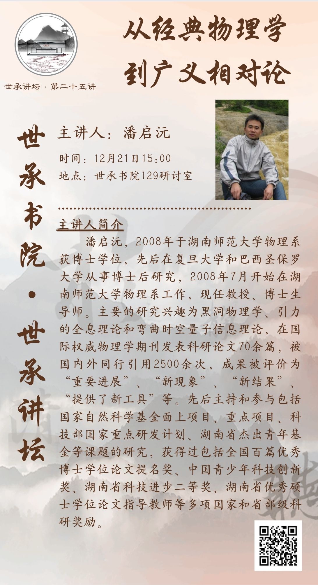 从经典物理学到广义相对论——潘启沅教授做客第二十五期世承讲坛