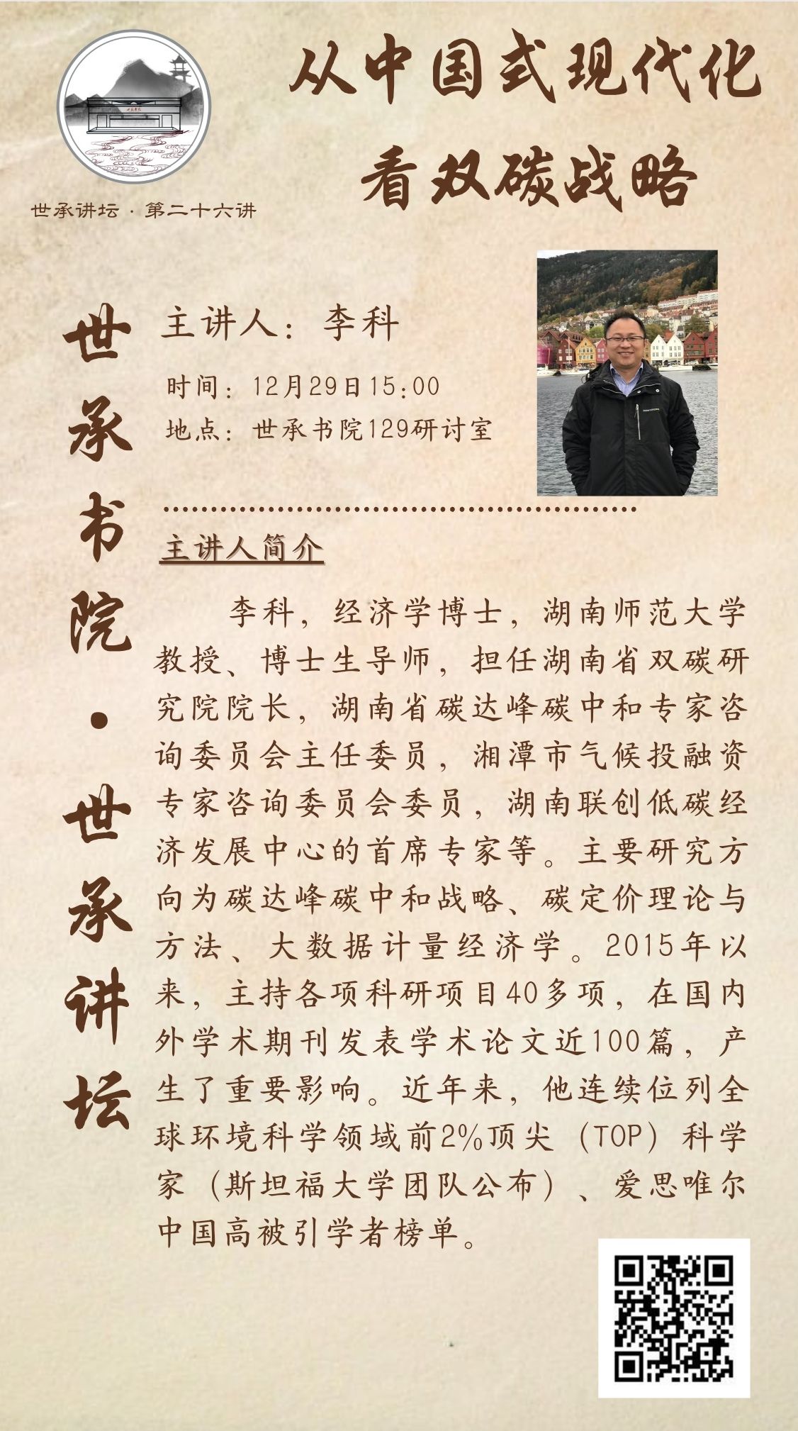 从中国式现代化看双碳战略——李科教授做客第二十六期世承讲坛