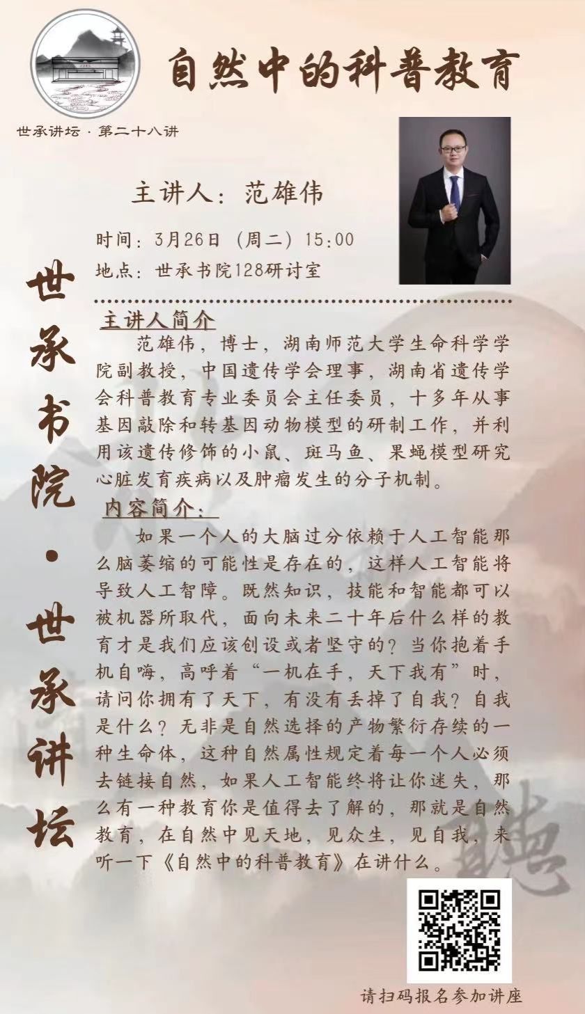 自然中的科普教育——范雄伟教授做客第二十八期世承讲坛