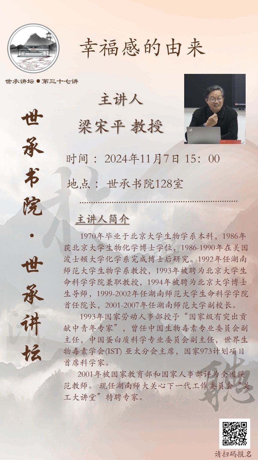 幸福感的由来——梁宋平教授做客第37期世承讲坛