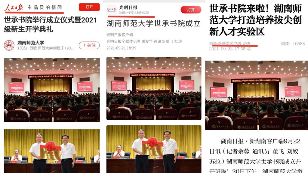 中国教育新闻网:《湖南师大:成立yl23455永利官网探索构建现代书院制培养新模式》