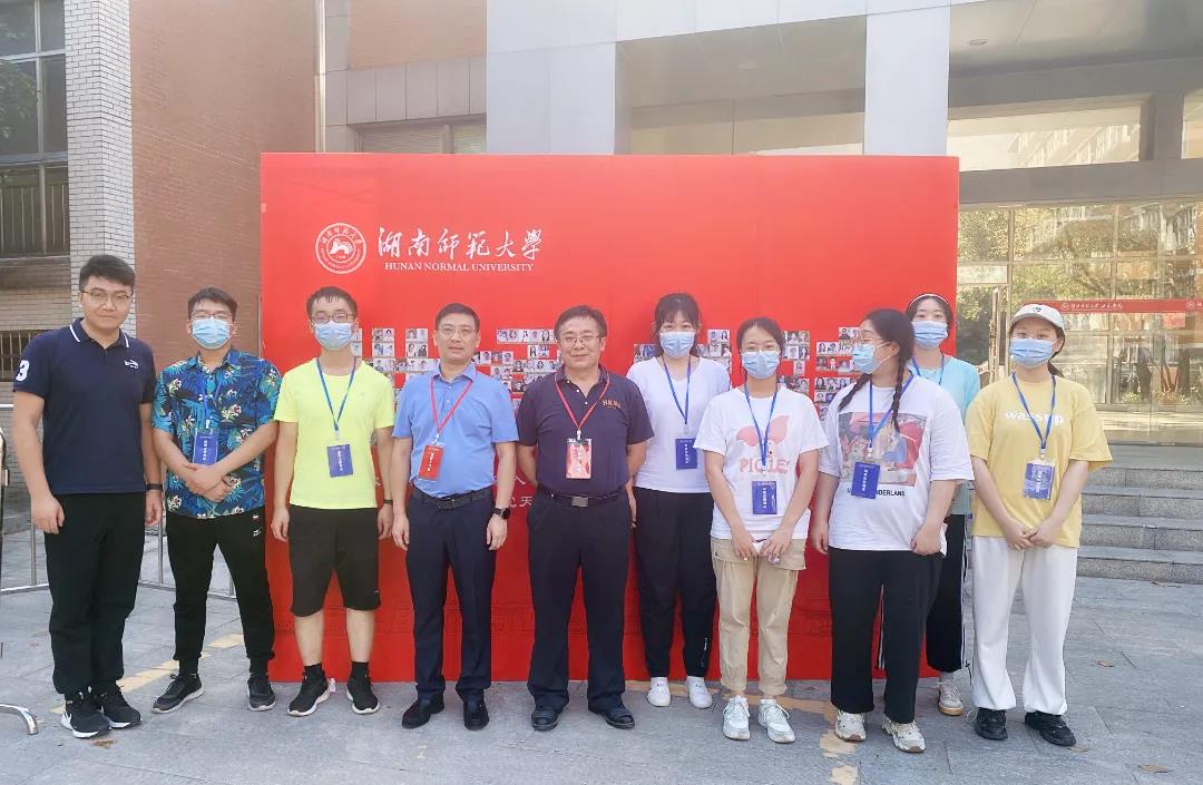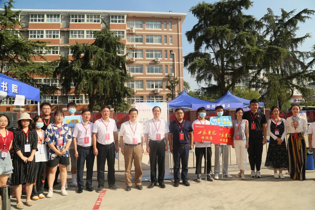 校党委书记蒋洪新、校长刘起军、副校长王辉与yl23455永利官网负责迎新的老师及志愿者合影