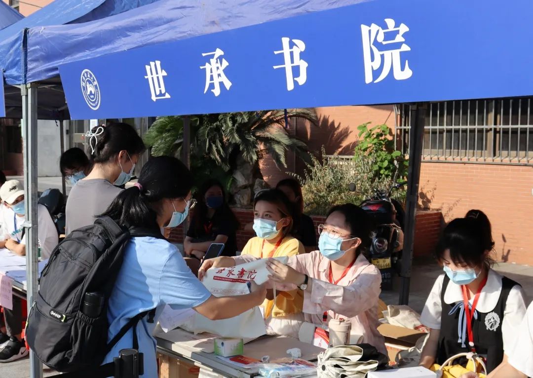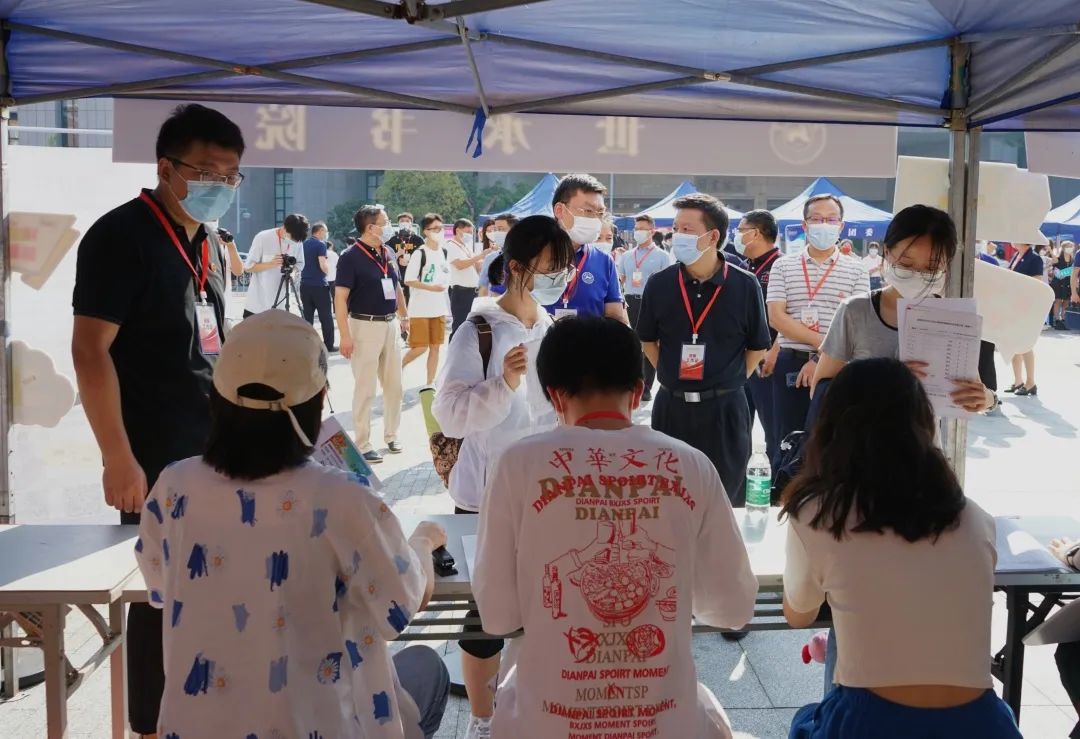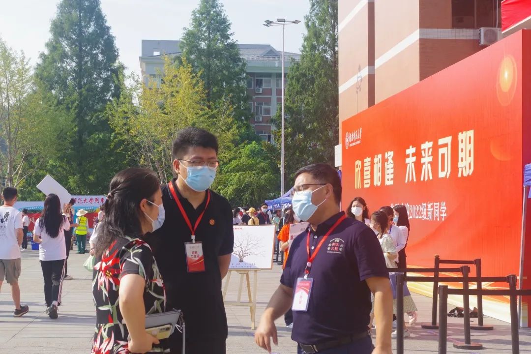校党委书记蒋洪新教授一行来到五舍广场看望yl23455永利官网的迎新志愿者