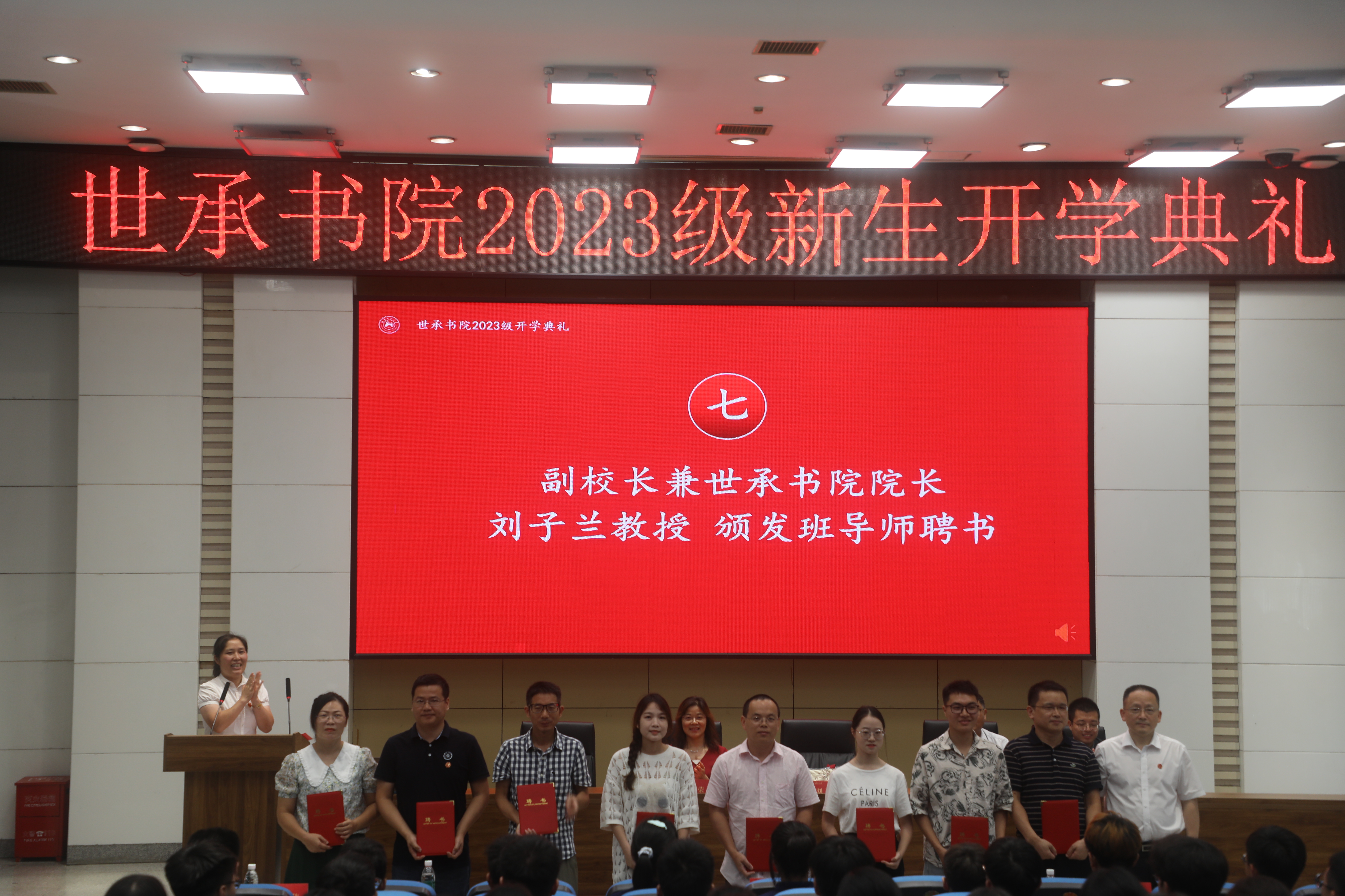 高荣国宣读《yl23455永利官网关于2023级本科生班导师聘任的决定》,刘子兰代表书院为新聘班导师颁发聘书。
