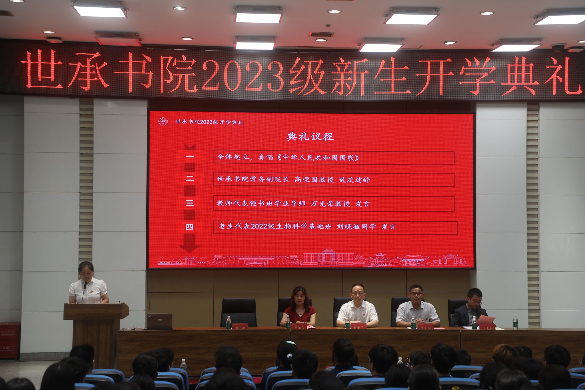 yl23455永利官网常务副院长高荣国致欢迎辞。高荣国代表书院全体师生员工对2023级新生的到来表示热烈欢迎,他结合廖世承先生“体育第一、德育第二、智育第三”的育人理念,向新生提出了三点希望。一是希望同学们成为身心健康的人,自觉养成良好的生活习惯,为投身国家富强和民族复兴伟业锻造健康的心灵和体魄;二是希望同学们成为品德高尚的人,以优秀道德模范为榜样,崇德向善,见贤思齐,厚植责任意识与担当精神;三是希望同学们成为掌握过硬本领的人,勇攀学术高峰,追求卓越,充分利用学校和书院提供的平台和资源,向着成为拔尖创新人才的目标奋力奔跑。