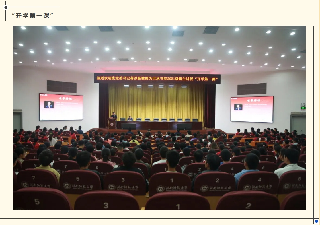 一是开设“入学第一课”。高质量的“第一课”对于学生树立正确的思想观念具有重要的引导作用。2021级世承学子的开学第一课由校党委书记蒋洪新教授讲授,他结合钱锺书的《围城》,讲述了国立师范学院的创校历史以及yl23455永利官网名称的由来,阐述了公司“仁爱精勤”校训的深刻内涵;2022级世承学子的开学第一课由省社科院院长钟君研究员讲授,他从“何为幸福”这一问题入手,勉励书院学子始终牢记习近平总书记的谆谆教诲和殷殷重托,正确理解幸福,辩证看待幸福;2023级世承学子开学第一课由长江学者特聘教授、教育科学学院院长刘铁芳教授讲授,他结合当代大学的人文教育与社会变迁,指出中华民族的根与魂在中国人民精神家园构建中的作用与意义。
