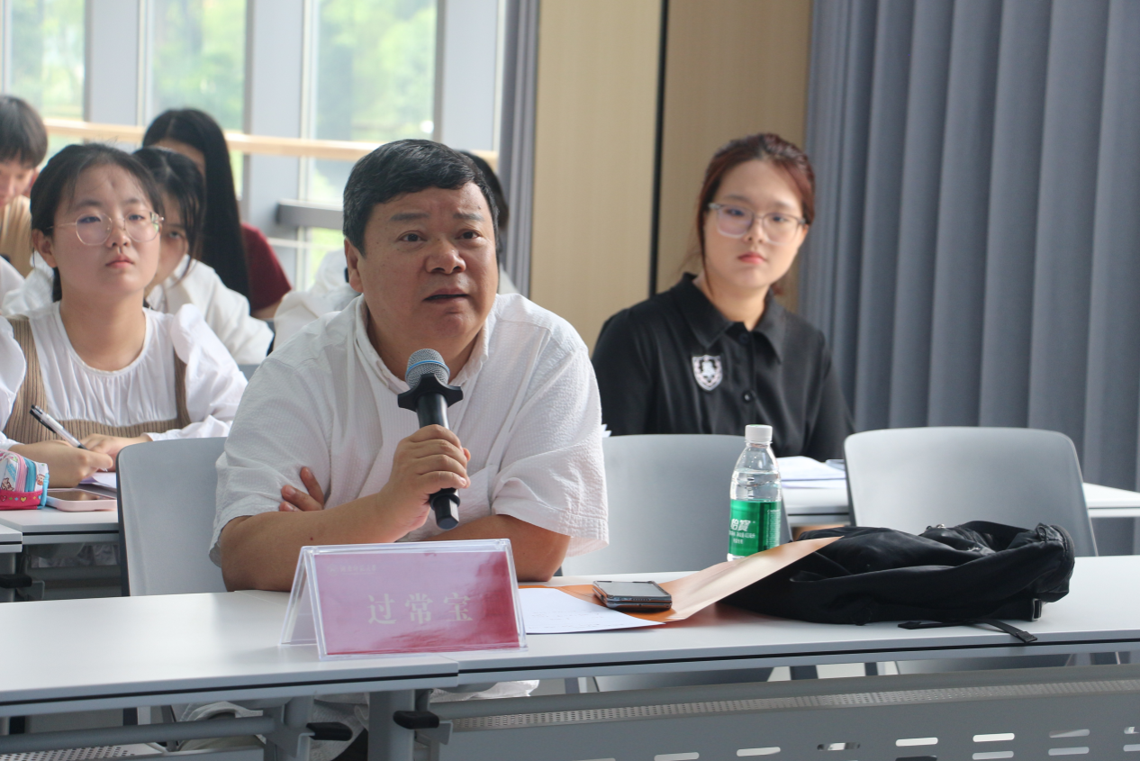 点评环节中,过常宝对同学们的读书汇报分享进行了逐一点评。他对同学们在《诗经》阅读过程中的深入思考和现场的精彩汇报分享表示充分的肯定。他指出,《诗经》不仅是一部文学著作,更是中华传统文化的优秀载体,同学们对《诗经》的理解不能仅仅局限于诗歌文字表面,更应该结合时代历史背景等进行更具广度和深度的研究。他鼓励同学们在今后的学习研究中不断加强深度思考,培养批判性思维,学会融会贯通,尊重别人思想的同时更要敢于形成自己的独特见解。
