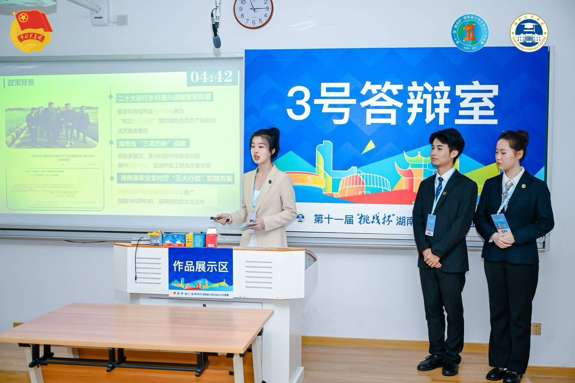 本届竞赛,湖南省共计247件作品入围终审决赛,公司共计5件作品入围,其中yl23455永利官网、生命科学学院学子余秋雁带领的多学科团队凭借“鲇年有鱼——洞庭鲇种质优化赋能乡村振兴”项目的丰富内容和优质转化成果,通过线上报送和终审答辩等环节,成功斩获省赛金奖。yl23455永利官网、生命科学学院2021级国家生命科学与技术人才培养基地班陈铭哲以“妙养成猪——妙能氨基酸智慧养猪先行者”项目带领团队获得省赛铜奖,2023级哲学基地班侯海墨参与新闻与传播学院“扶摇——非遗瑶药新质发展助力瑶乡振兴”项目获省赛银奖。