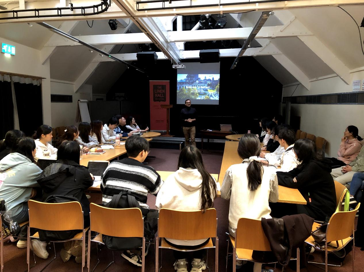 贝尔法斯特女王大学位于北爱尔兰首府,作为英国罗素大学集团的成员之一,在翻译领域享有盛誉。该暑期研学项目由校方邀请David Johnston教授等知名学者进行授课,课程涵盖技术翻译、视听翻译、计算机辅助翻译等语言技术类内容。通过笔译、口译实践,学生加深了对翻译核心原则的理解,增强了面向文化差异时对翻译技巧的运用。在课堂外,校方邀请作曲家Duke Special举办钢琴音乐会,分享在歌曲译配中如何平衡忠实原作与个性表达,促进了学生探索翻译与艺术的创造性交融。项目主办方邀请了畅销书作家Tony Macaulay开展读者交流会,阐述进行创意写作训练的重要性及方法,启发了学生的文学创作热情。为加深对北爱尔兰历史的认识,学生开启了为期两日的博物馆之旅,先后赴德里Free Derry、贝尔法斯特Titanic Belfast等博物馆进行参观。此外,学生也通过聆听本土音乐剧,观察当地语言特征,并前往爱尔兰都柏林等地进行游学,体验多元文化的碰撞与融合。