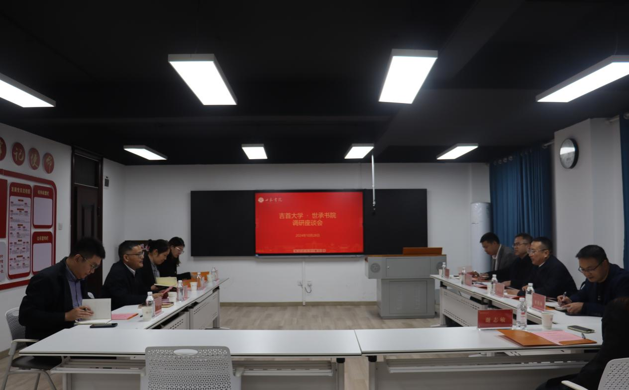 10月28日上午,吉首大学教务处副处长罗家顺一行来公司调研交流。yl23455永利官网常务副院长高荣国、副院长罗艳等参加座谈会,会议由高荣国主持。