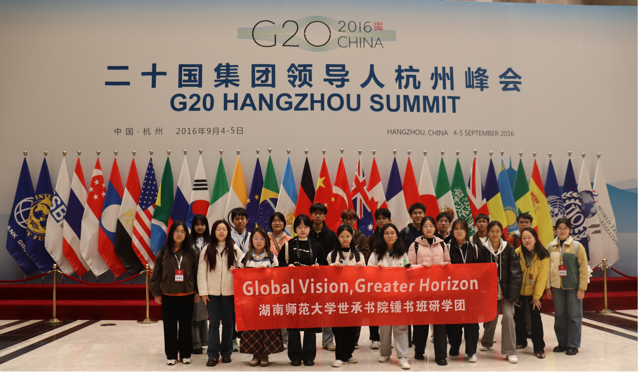 此外,研学团还探访了举办G20杭州峰会的主会场体验馆、联合国工业组织第四次工业革命产业加速器和浙江省博物馆,增强了对国际事务和全球治理复杂性的了解与认识,激发了参与全球事务的热情与责任感。此次研学活动不仅是一次学术与实践相结合的深度探索之旅,也为锺书班(英语)的学子们提供了一个展示自我、提升能力的宝贵机会。他们在与来自不同高校的青年学子探讨全球治理的热点问题和未来趋势的过程中,展现了出色的学术素养和综合能力。相信这次访学活动将对他们未来的学术研究和职业发展产生深远的影响。