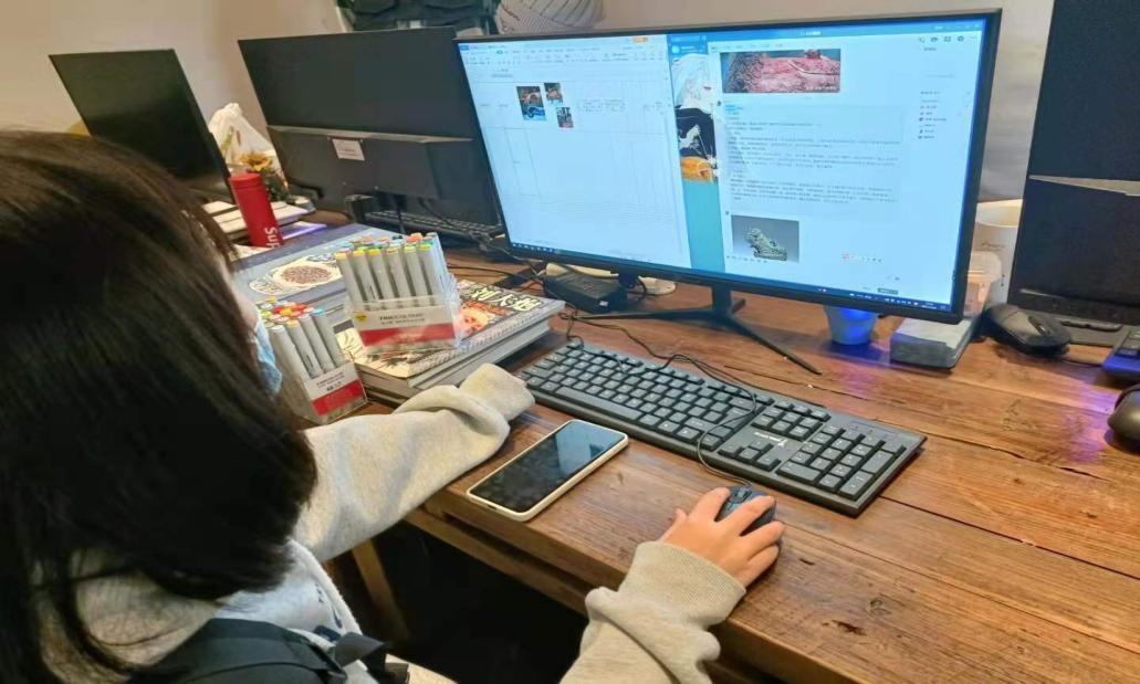 此次志愿活动的内容为搜集并汇总八件精品文物资料。五位志愿者合理分工,纷纷围坐在木桌旁,紧锣密鼓地展开搜罗。志愿者们从网络百科、文物鉴赏论文、省博物馆藏品数据库中查找资料,齐心协力,相互协作,让隐藏在“犄角旮旯”的资料“无地遁形”。志愿者们将琐碎的数据资料汇合完整,得到了工作人员的认可和赞扬。