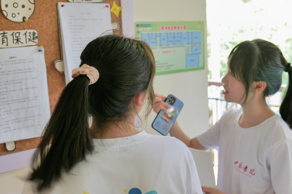 “造梦湘游”暑期社会实践团调研组成员走进望月湖幼儿园,以基础设施、宣传公示栏等实物为切入点获取相关信息,从各班课程活动表、每月工作重点清单中了解情况。针对教学活动开展等问题,调研组依此采访了不同年级的教师吴喜庆老师、龙方圆老师和向芊慧老师,询问教学方式、幼儿阶段的能力培养情况、以及对英语启蒙活动在幼儿园开展的态度等问题。教师们表示,幼儿园平日很少设计英语活动,英语只能作为娱乐性元素融入其他教学活动,符合寓教于乐的方式。