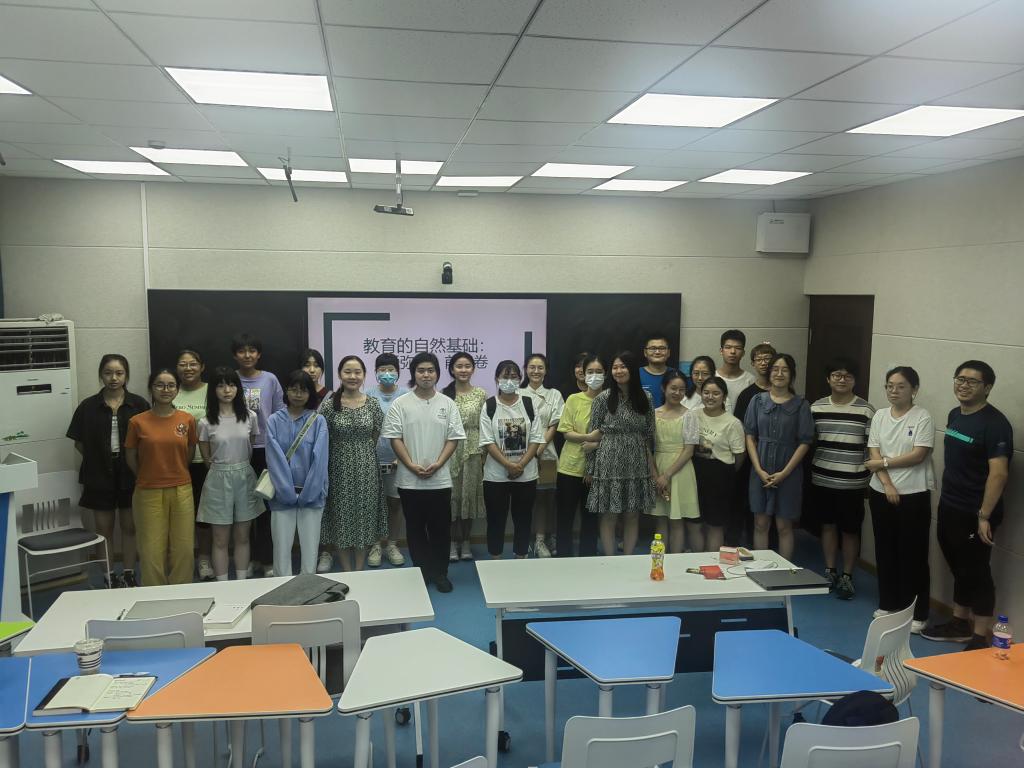李海容从作者生平与《爱弥儿》一书的写作背景引入,分卷细读,从教育的多个方面阐释了卢梭的自然主义教育观,并解释了卢梭在《爱弥儿》中谱就的教育实践蓝图,为听众绘制出一幅通向《爱弥儿》与自我的地图。随后,参会人踊跃发言讨论,就童年的诞生、卢梭的自然与政治、受教育者的天性与教育的目标等问题进行了多轮深入的讨论。最后,由主持人进行抽奖环节并合影留念。