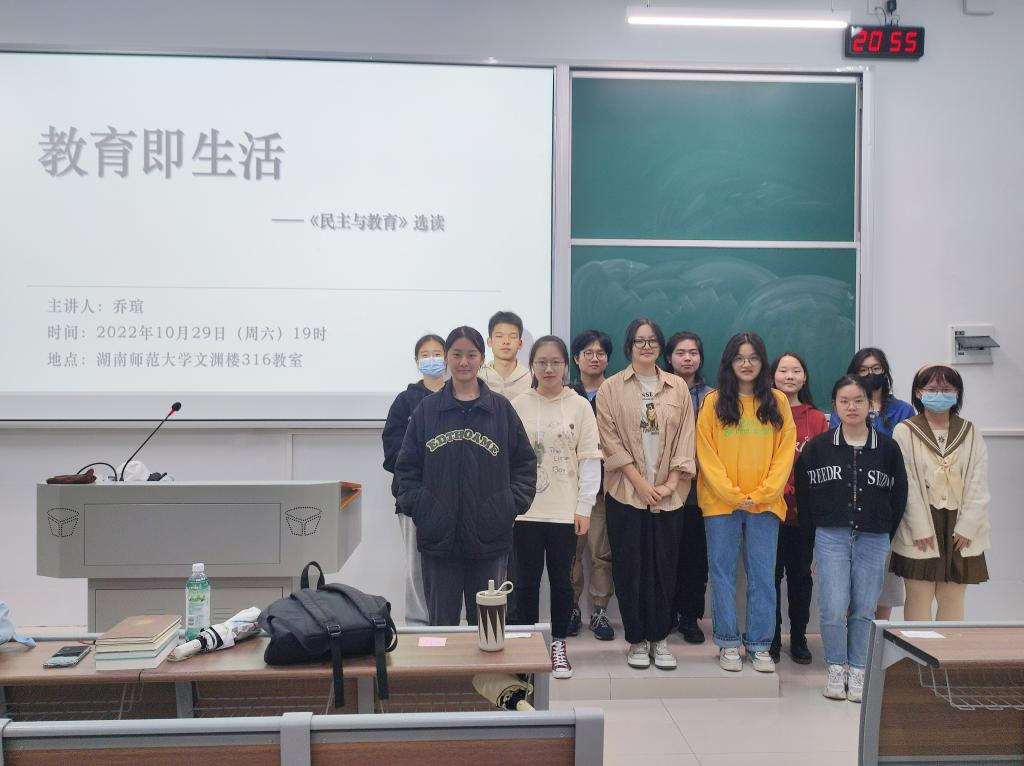 此次活动由21级哲学基地班李婧语主持,由21级哲学基地班乔瑄主讲杜威的《民主与教育》。