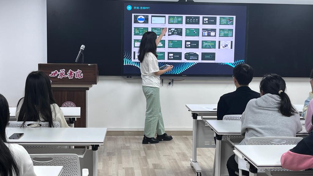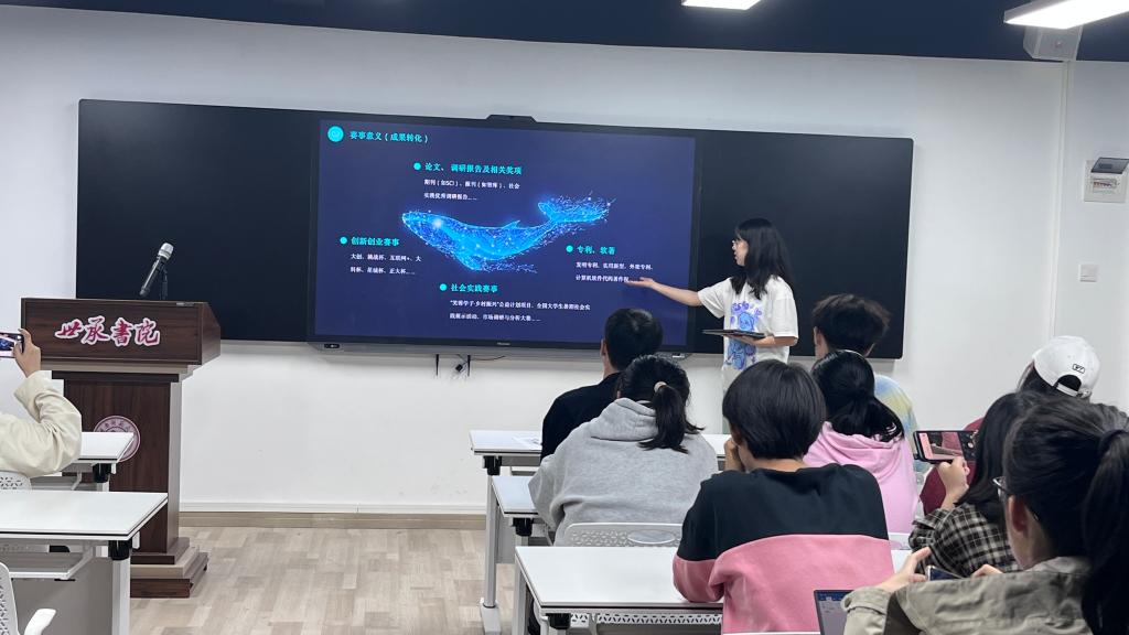 丁兰若与同学们分享了她过往的比赛经历,根据自身经验就如何备赛进行了详细讲解,并展示了往届优秀参赛作品。在解答了同学们的疑惑后,丁兰若鼓励同学们充分发掘个人潜能,积极参与各类大学生竞赛,遇见更好的自己。