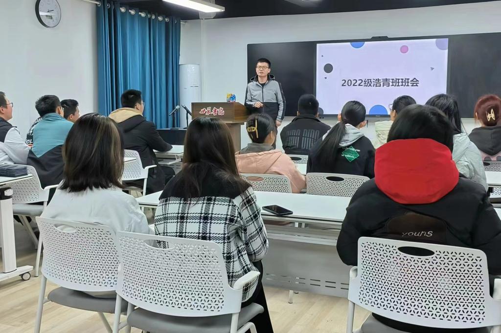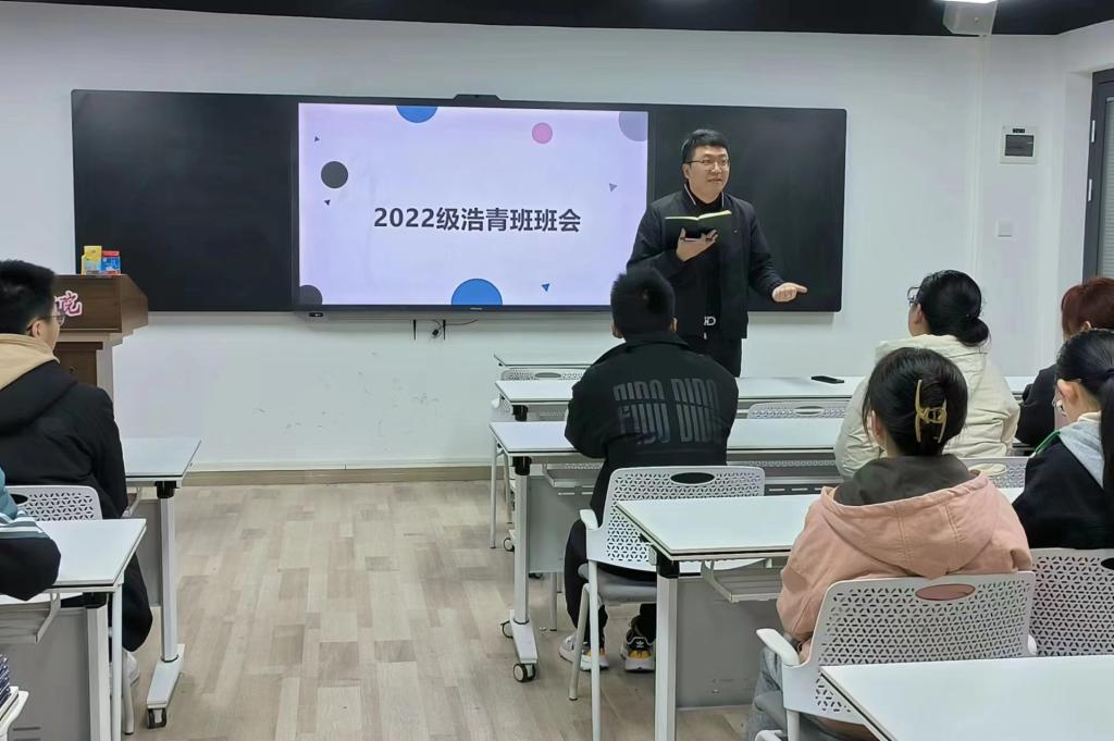 (通讯员 孟宇彤)学期伊始,万象更新,为帮助同学们在新学期内尽早明确学习目标,找到发展方向,2022级浩青班于3月2日下午在书院129研讨室召开专业主题讲座,班导师杨星教授、学生事务管理办公室主任杜涛、yl23455永利官网辅导员彭诚意出席会议,会议由班长李希主持,2022级浩青班全体同学参加。