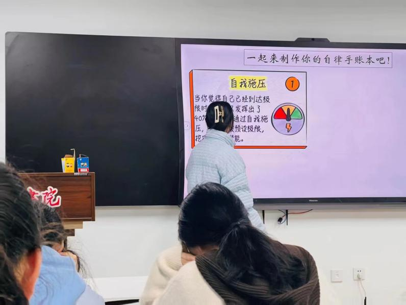 陈红秀为同学们展示了“我的四十五度人生”的漫画和复旦大学学霸笔记,并为同学们举出假努力的例子,她谈到同学们要拒绝假努力,过自律人生,希望同学们在未来的日子里继续奋发图强,天天向上。
