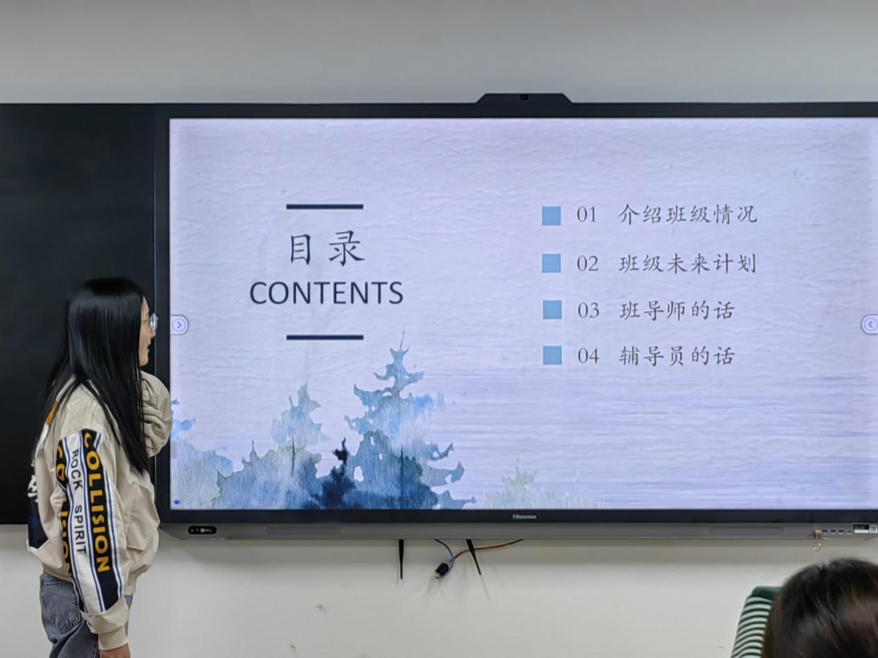 谭思依结合班训“历众史而明正道 致广大而尽精微”强调了历基班同学的任务和根本理念,总结了一学期来历史基地班的学习、文体等多方面情况,对班级在大一上学期的表现给予了肯定,指出了班级目前所存在的问题,并对班级全体同学予以期望,最后对新学期的各方面发展提出合理建议,强调了平衡学习与休息的重要性。