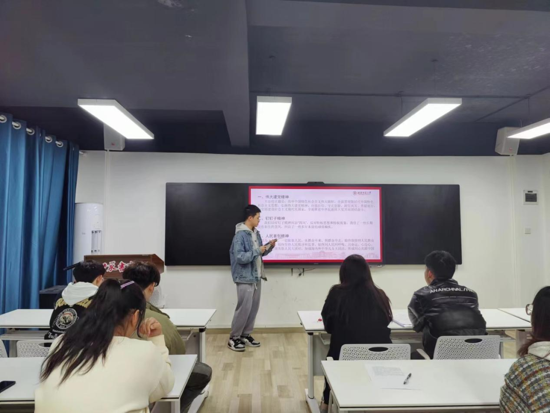 培训活动上,伍峻锋同学首先以“奋进新时代,展青年担当”为主题介绍了二十大精神,并让大家进一步了解了伟大建党精神、钉钉子精神和人民首创精神,强调了学生会作为学生组织,应坚持为学生服务,“学生至上”,增进同学们之间的关系,营造和谐的氛围。
