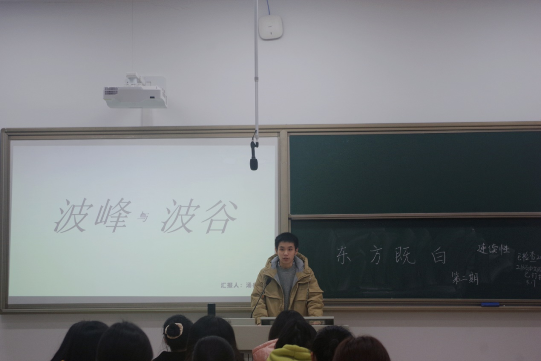 此次活动由21级历史基地班彭佳媛主持,由21级历史基地班汤冉旭主讲阎步克《波峰与波谷:秦汉魏晋南北朝的政治文明》。