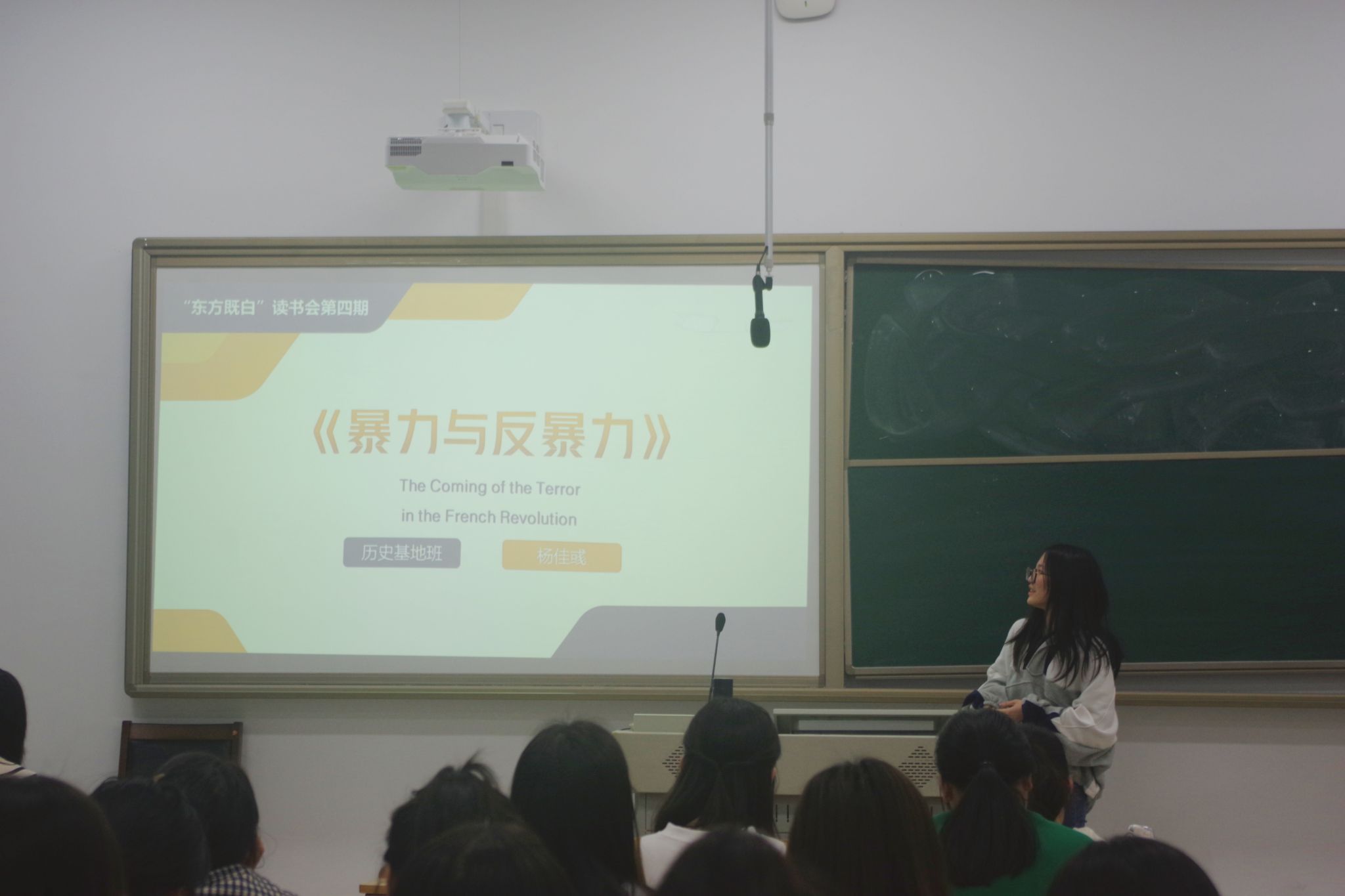 此次活动由21级历史基地班曾芷君主持,由21级历史基地班杨佳彧主讲谭旋著《暴力与反暴力:法国大革命中的恐怖政治》。