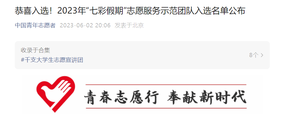 (通讯员 张艺严)为深入学习宣传贯彻习近平新时代中国特色社会主义思想,引导动员青年学生加强对农村留守儿童、城市随迁子女等少年儿童群体的关心关爱,以实际行动贯彻落实党的二十大精神,团中央青年志愿者行动指导中心、中国青年志愿者协会秘书处近日发布了《关于遴选2023年“七彩假期”志愿服务示范团队的公告》。公司“薪火予你”暑期社会实践团成功入选2023年“七彩假期”志愿服务示范团队。
