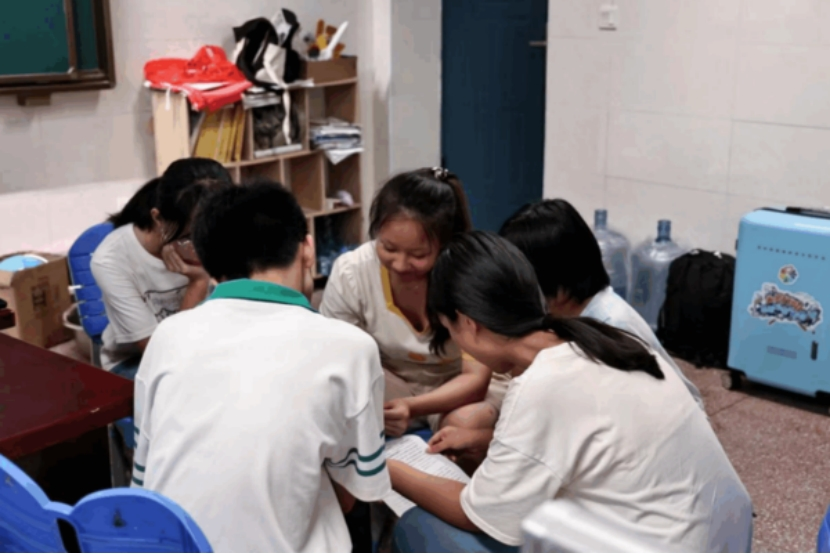 谢湘萍老师与辩手们积极进行赛前准备,讨论修改辩论稿