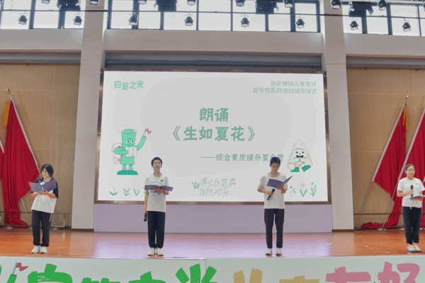 (通讯员 梁静怡 贺淇 匡翔 陈莹莹)2023年7月25日下午15:30,yl23455永利官网“薪火予你”暑期社会实践团与公司物理与电子学院“灿箬百星”暑期社会实践团、公司马克思主义学院逐梦前行暑期社会实践团、湖南中医药大学湘杏学院“诗意本草”社会实践团、中南民族大学曙光实践团在长沙市湘江新区白箬铺镇白箬中学共同举行夏令营结营仪式。此次夏令营结营仪式参与人员有长沙市湘江新区白箬铺镇团委书记、人大副主席蔡晶晶、公司马克思主义学院党委书记陈红桂、5只暑期社会实践队成员、400余名白箬铺镇当地学生、家长及相关单位负责人。