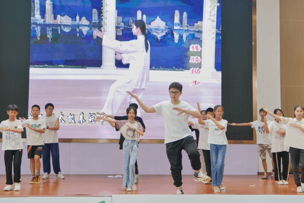 同学们和老师一起表演太极拳