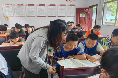 在辅导过程中,学生们认真书写暑假作业,实践团成员在旁一同学习。遇到难题时,学生们举手示意,团队成员将会对其进行一对一课业辅导,以解决其困惑。学生们仔细聆听实践团成员的意见及想法,并向实践团成员分享自我看法,在掌握题目解法的同时,进一步拓宽思路,培养学科思维。
