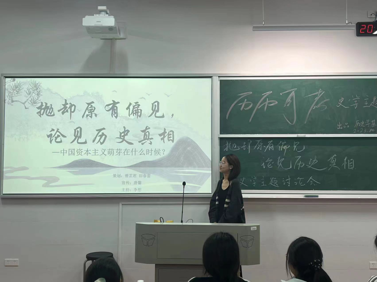 (通讯员 唐馨 曾芷君 谌陈米拉)10月21日,yl23455永利官网“历历可考”史学主题读书分享会——《讨论中国资本主义萌芽的历史争议》于文渊楼305教室顺利开展。此次活动由2023级历史学基地班李想主持。