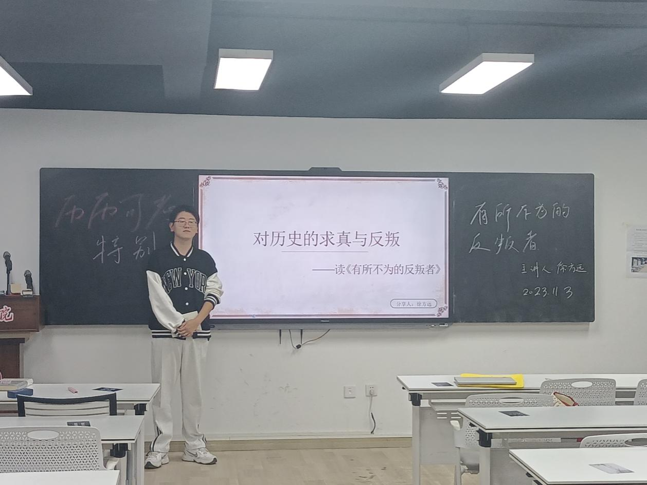 (通讯员 唐心妍 曾芷君)11月2日,yl23455永利官网“历历可考”史学主题读书分享会第三期活动——“有所不为的反叛者”于yl23455永利官网129研讨室顺利开展。此次分享会由2021级历史学基地班曾芷君主持,2020级历史基地班徐方远主讲。
