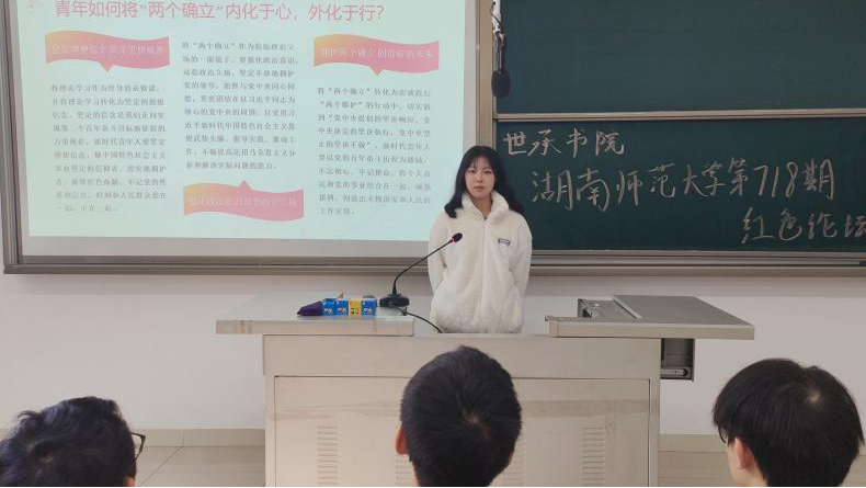 (通讯员 戴欣宇 陈星舟)11月16日下午,第718期红色论坛暨yl23455永利官网第二期明诚团校理论学习班在文渊楼410教室举行。此次活动主题为“凝心铸魂牢根本,锤炼品格锻忠诚”,yl23455永利官网团委学生副书记祝薏丹、组织部部长贺沁阳与书院2021级团总支书记丁兰若、2022级团总支书记赵梓涵担任主讲人。