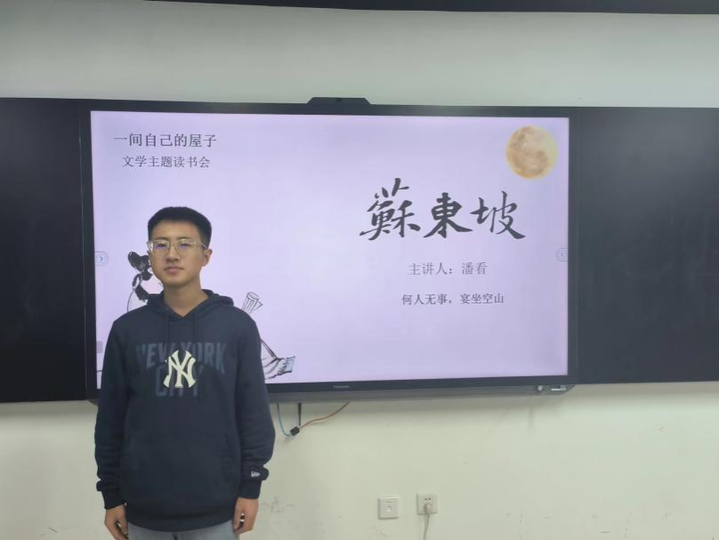 (通讯员 潘看 雷斯涵 陈俊龙)12月17日晚,yl23455永利官网“一间自己的的屋子”文学主题读书分享会第八期活动于书院129研讨室顺利举行。此次活动由2022级中国语言文学国家文科基地班雷斯涵主持,2022级中国语言文学国家文科基地班潘看主讲“去看一个文学家、美食家、月下漫步者的一生——谈谈苏东坡”。