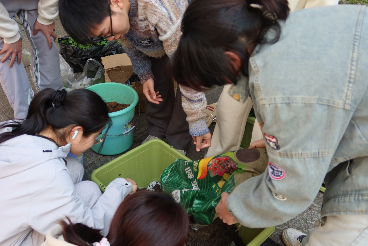 活动过程中,不同年级、不同专业的同学互相合作,共同种植一盆花卉。从领取种植箱、土壤、种子或花苗以及种植工具,到着手种植,同学们全程热情高涨,积极参与到种植活动中。唐晓曼在旁帮助同学们解决问题,鼓励、支持和引导同学们进行劳动。