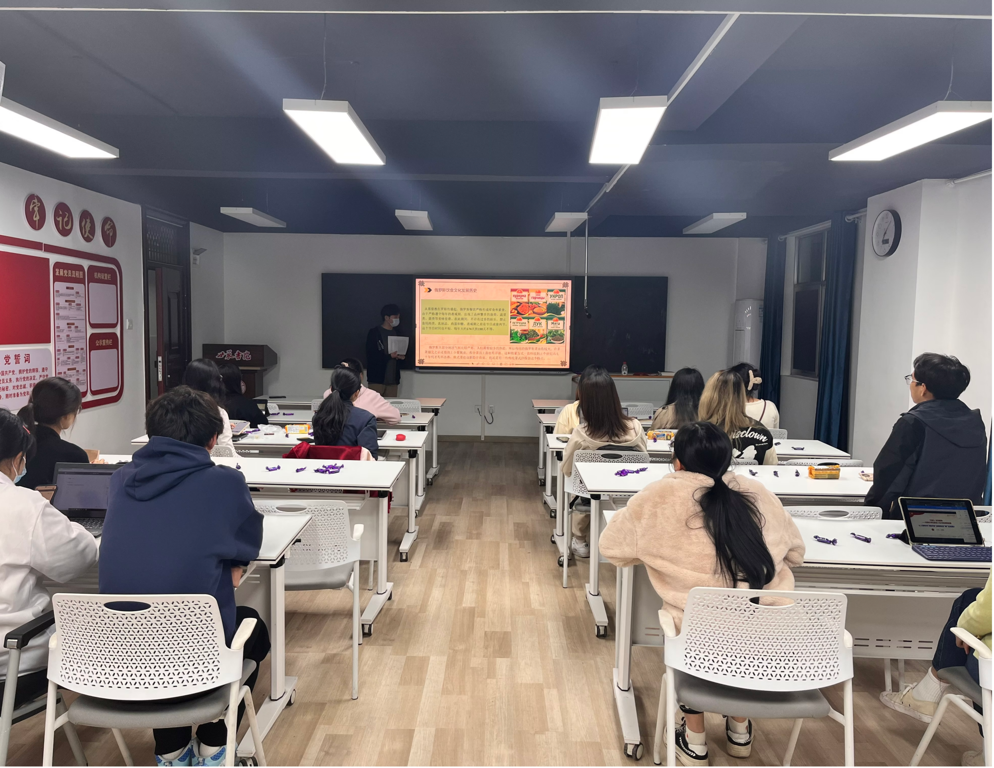 梅仕俊首先介绍了俄罗斯美食文化的历史背景和地域特色,强调了饮食文化在俄罗斯民族性格和文化传统中的重要地位,并以图片的形式展示了俄罗斯各地的特色菜肴和食材,为同学们提供了丰富的视觉和知识享受。活动过程中,梅仕俊详细讲解了俄罗斯传统菜肴的制作方法和食材选择,如著名的红菜汤、烤肉串、鱼子酱等,并分享了这些菜肴背后的文化意义和历史故事。他特别强调了俄罗斯人对食物的尊重和热爱,以及食物在俄罗斯家庭和社会生活中的核心作用。梅仕俊结合了俄罗斯的地理环境和气候条件,分析了这些因素如何影响俄罗斯人的饮食习惯和烹饪风格。他指出,俄罗斯广袤的土地和极端的气候造就了独特的食材和烹饪技术,这些特点在俄罗斯美食中得到了充分体现。