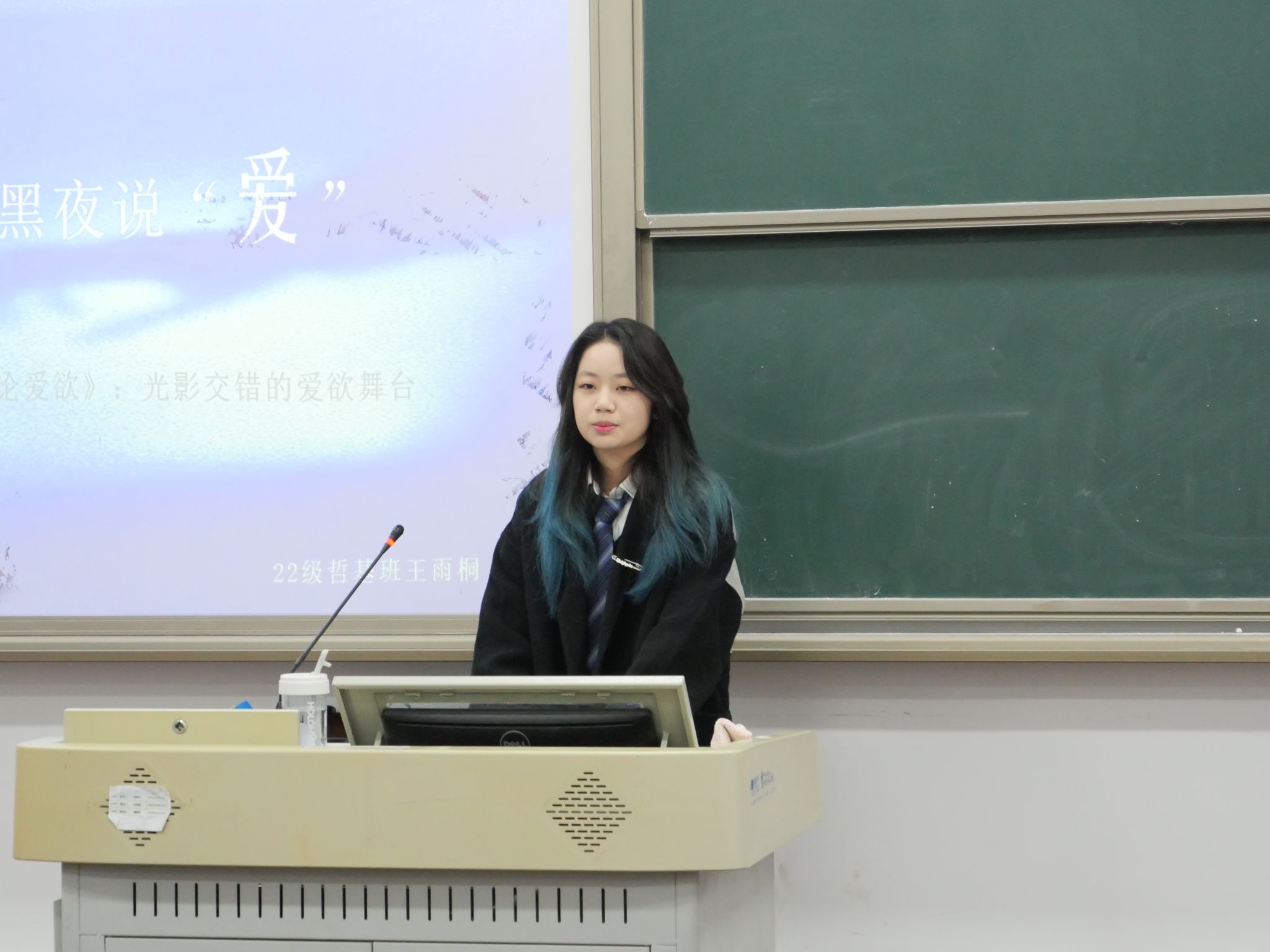 (通讯员 王雨桐 雷斯涵 李宇杰)11月23日晚,yl23455永利官网“哲学和世界”主题读书分享会第六期活动于文学院413教室顺利开展。此次活动由2022级哲学基地班王雨桐主讲“在正午时刻的黑夜说‘爱’——《论爱欲》:光影交错的爱欲舞台”。