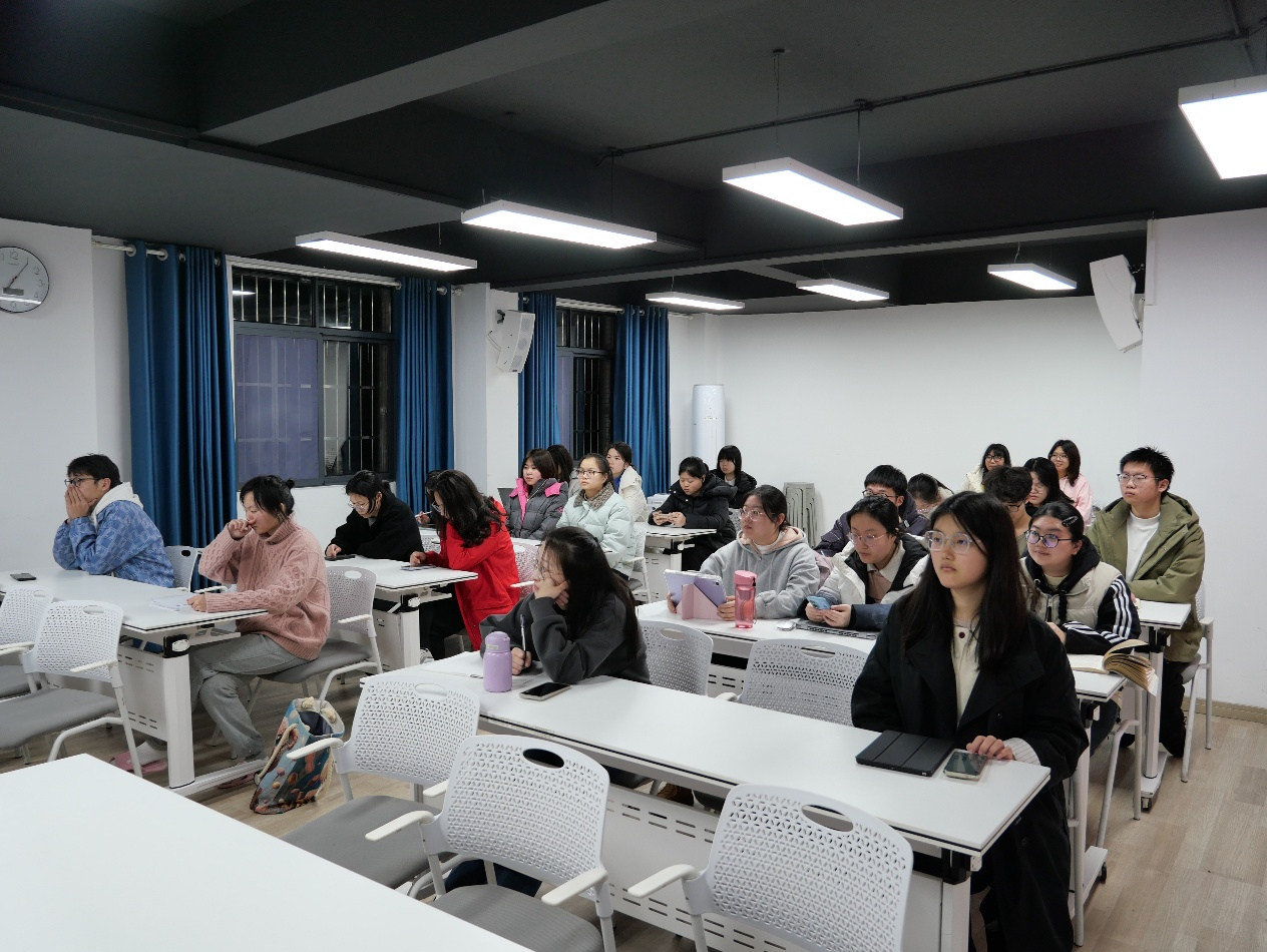 在交流互动环节,同学们展现出极高的热情,积极发表自己对前卫摇滚及《悉达多》的独特见解,相互探讨存在的疑问。潘乐存与同学们进行了深入的对话交流,营造出热烈的研讨氛围,促进了思想的碰撞与交融。