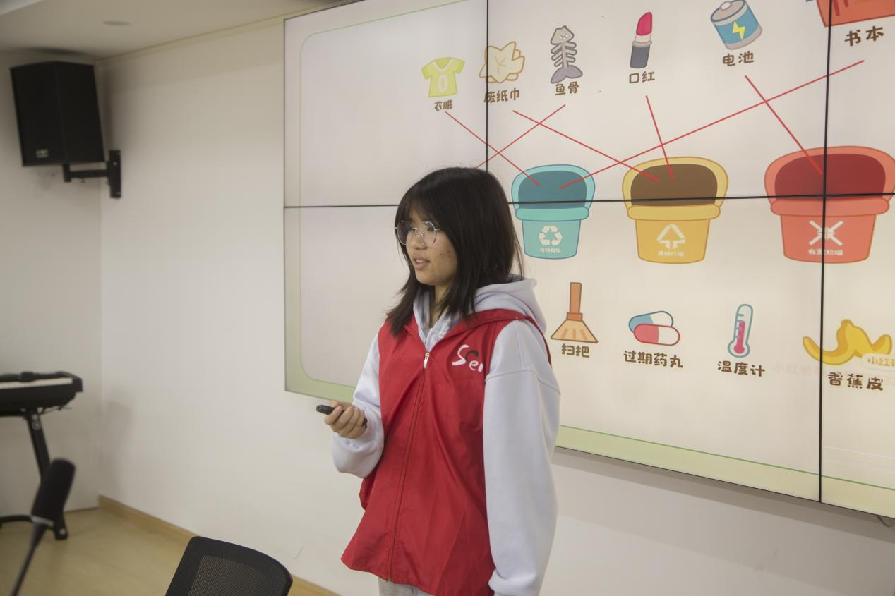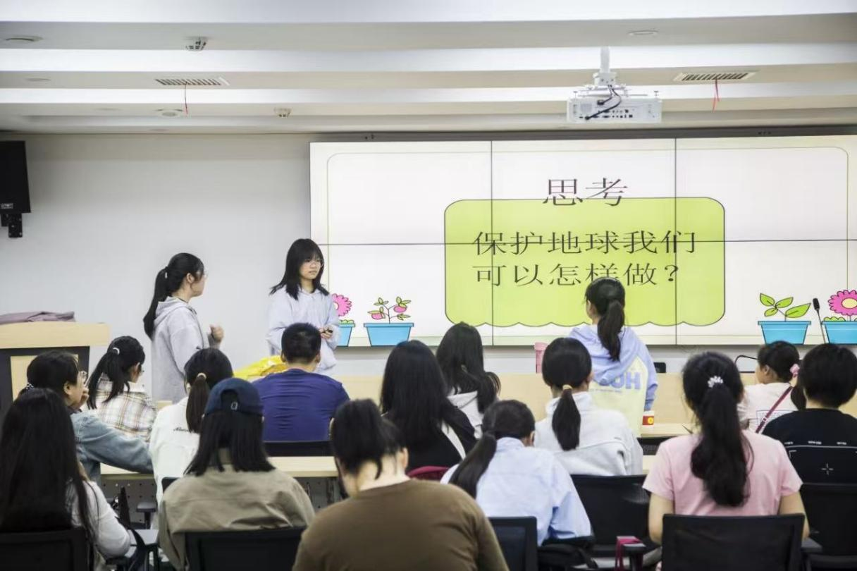 活动伊始,主讲人祁靖雯以“什么是世界地球日?”的问题引出本次活动的主题,然后用纪录片片段介绍了世界地球日的由来。之后,主讲人通过“地球冷知识”竞猜活动活跃现场气氛。从磁极倒转到板块运动,生动的案例让“珍爱地球,人与自然和谐共生”的主题深入人心。紧接着,主讲人文思倩巧妙运用插画和情景模拟,引导孩子们发现生活中有关环保的细节,孩子们主动探索低碳出行、智能节电、节约用纸等具体实践。最后,通过主讲人的快问快答,孩子们在游戏中掌握了垃圾分类的实用技能。