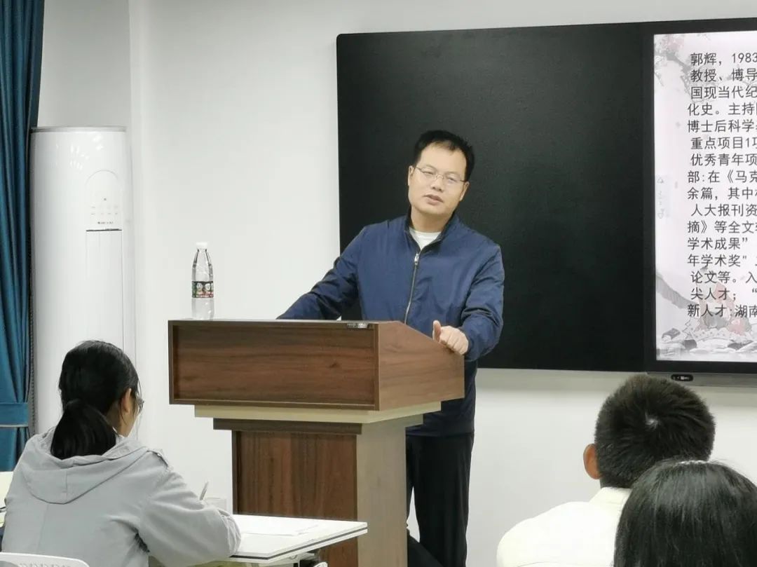 郭辉对历史基地班的人才培养方案及专业学习方法进行了介绍。他强调,学习历史专业需要深度思考能力与深厚阅读能力作支撑,应将广泛阅读视为学习的重点,详细讲述了思考与交流对历史学习的重要意义,鼓励同学们勇于探索、勇于质疑,以科学理论与多元证据支撑历史学研究。
