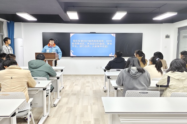 本次会议,旨在通过投票,选择符合浩青班的特色团支部风采内容。会议进行中,龙庭展示了团支部设计的Logo、支部服装、班歌以及班级口号,并遵循民主选择原则,以群投票的方式确定了支部风采展示内容,并讨论了今后的活动安排方针。活动最后,罗杰对21级浩青班今后的活动安排提出了宝贵的指导意见。