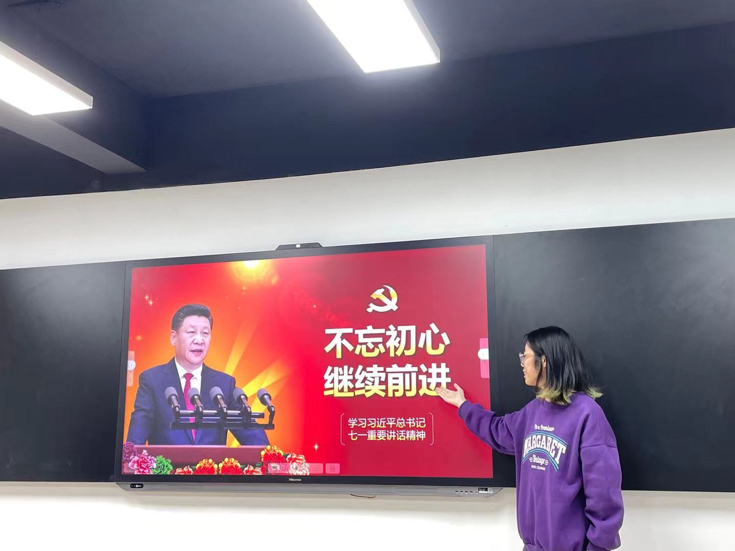 首先,团支书组织大家集体唱国歌、团歌。全体同学学习了习近平总书记“七一”重要讲话内容,面对未来,面对挑战,不忘初心,继续前进。随后,优秀团员张德清上台发言,与大家分享心得。最后,团支书总结了本次团日活动。